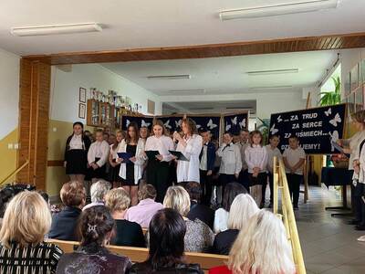 Młodzi artyści słowem i piosenką uświetnili ten wyjątkowy dzień, dziekując swoim nauczycielom za trud, za serce, za uśmiech.