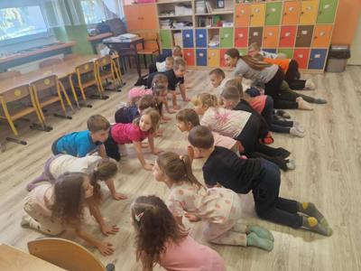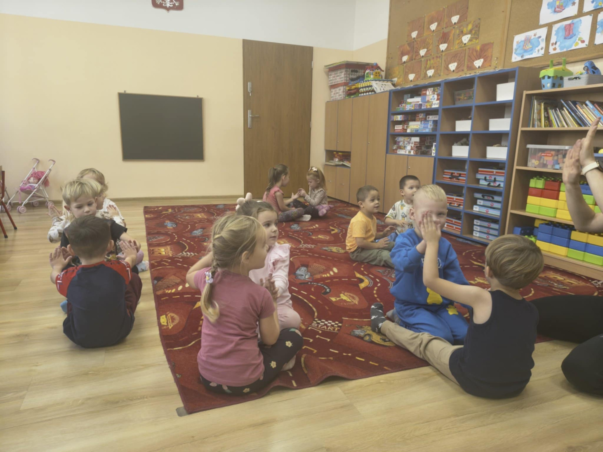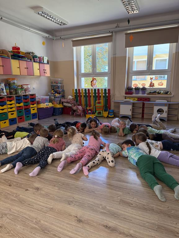 Dnia 20 października 2025 r. nasze 3,4,5,6 latki uczestniczyły w zajęcia Metodą Ruchu Rozwijającego Weroniki Sherborne, które przeprowadziła Pani Agnieszka Wilczewska pracownik tutejszej poradni. Metoda ta to system ćwiczeń oparty na ruchu, zabawie i kontakcie z drugim człowiekiem, mający na celu wspieranie rozwoju psychoruchowego dziecka. Nasze dzieci bardzo chętnie uczestniczyły w tych zajęciach