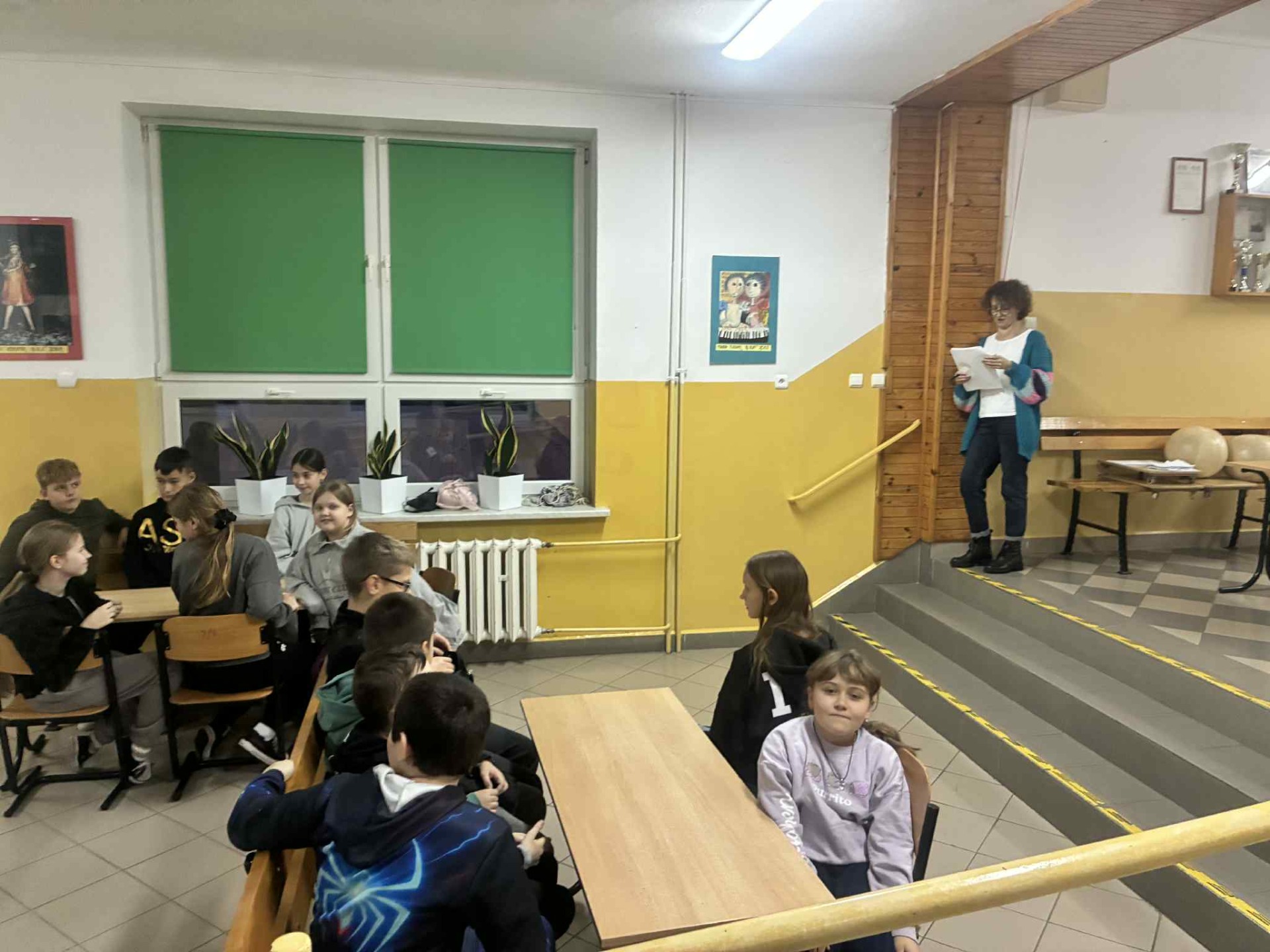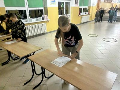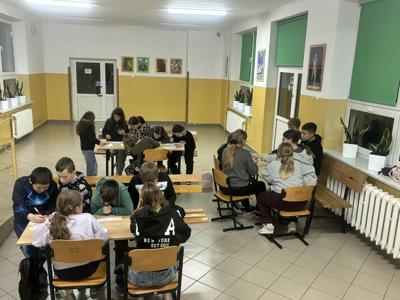 Z okazji Świeta Tabliczki Mnożenia uczniowie klas IV, Va i Vb uczestniczyli w spotkaniu "Matmawieczór". Zajęcia miały na celu szerzenie idei matematycznych: uczyły współpracy w grupie, zachęcały i motywowały uczniów do doskonalenia tabliczki mnożenia, kreatywnego myślenia, stosowania różnorodnych form i metod pracy. Podczas zajęć uczniowie mogli przekonać się, że matematyka to nie tylko trudne zadania, ale też wesoła zabawa. Uczniowie podzielili się na trzy drużyny: Borówki, Kebabowi Mistrze oraz Rosoły.pl. Pierwsza część to turniej „Jeden dziesięciu”- drużyny rywalizowały odpowiadając na pytania związane z matematyką. Następnie wpisując poprawne wyniki mnożenia w "Tabliczce szczęścia" odczytywali wróżby. Kolejnym etapem nauki przez zabawę były zawody sportowo-matematyczne, w których drużyny rozwiązywały zadania rachunkowe oraz wykazywały się sprawnością fizyczną. Uczniowie układali także figury symetryczne oraz ćwiczyli pamięć odtwarzając układankę z klocków. Uczniom bardzo podobało się połączenie zabawy i rozwiązywania zadań matematycznych.Podczas spotkania wykorzystano pomoce dydaktyczne zakupione w ramach programu "Laboratoria Przyszłości".