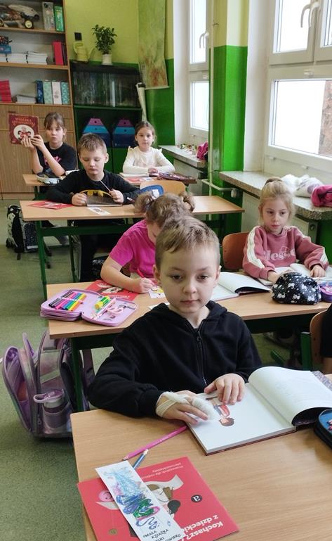 Ponadto uczniowie wzięli udział w zajęciach bibliotecznych z p. A. Zawadzką-Starengą, podczas których poznali pierwszy rozdział tej książki, zaprojektowali swoją zakładkę oraz stworzyli drzewo genealogiczne.