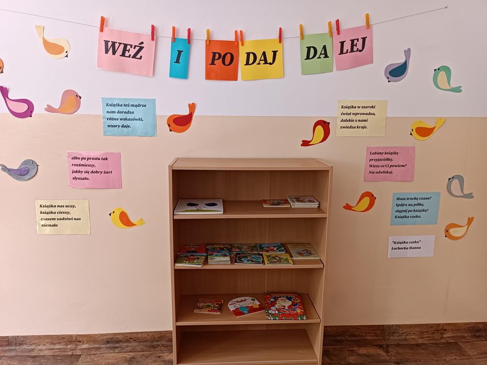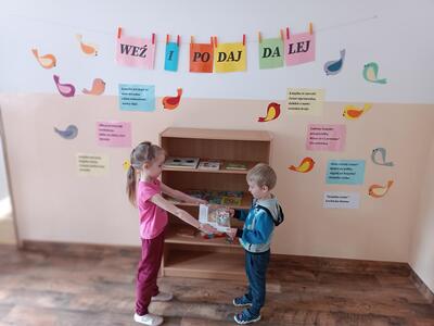 W ramach niej dzieci przynoszą z domu książeczki, których już nie czytają i dzielą się nimi z rówieśnikami.