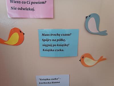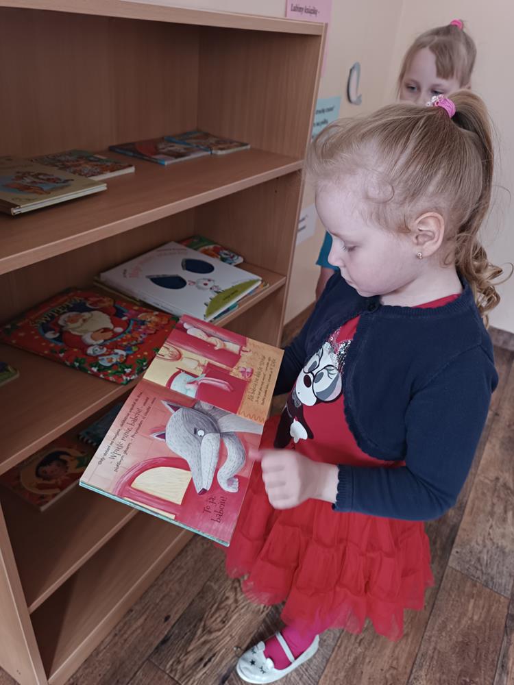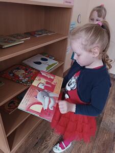 Dzieci mają przygotowany kącik czyteniczy gdzie mogą odkładać książeczki i zabrać do domu inne do poczytania.