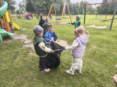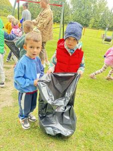 W myśl zasady, iż dobre nawyki należy kształtować od najmłodszych lat uczniowie z naszego przedszkola zaangażowali się w akcję edukacyjną Sprzątanie Świata. Dzieci pod opieką nauczycieli, wyposażone w rękawiczki