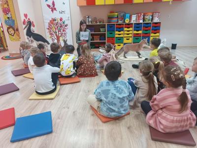 Co robią zwierzęta zimą? Tego mogły się dowiedzieć przedszkolaki podczas spotkania z Panią Moniką Białobrzeską