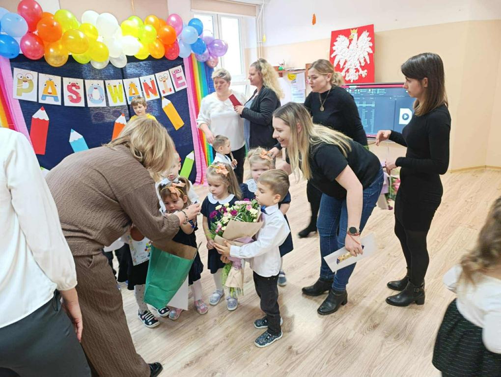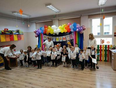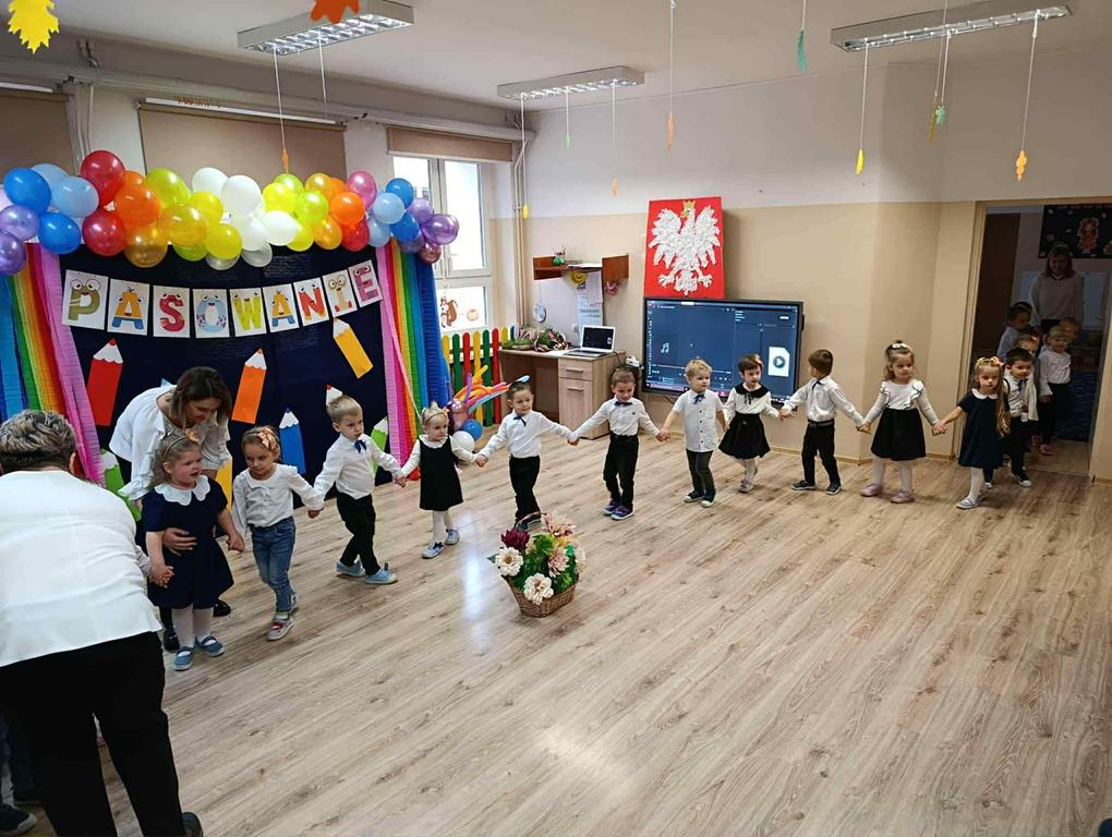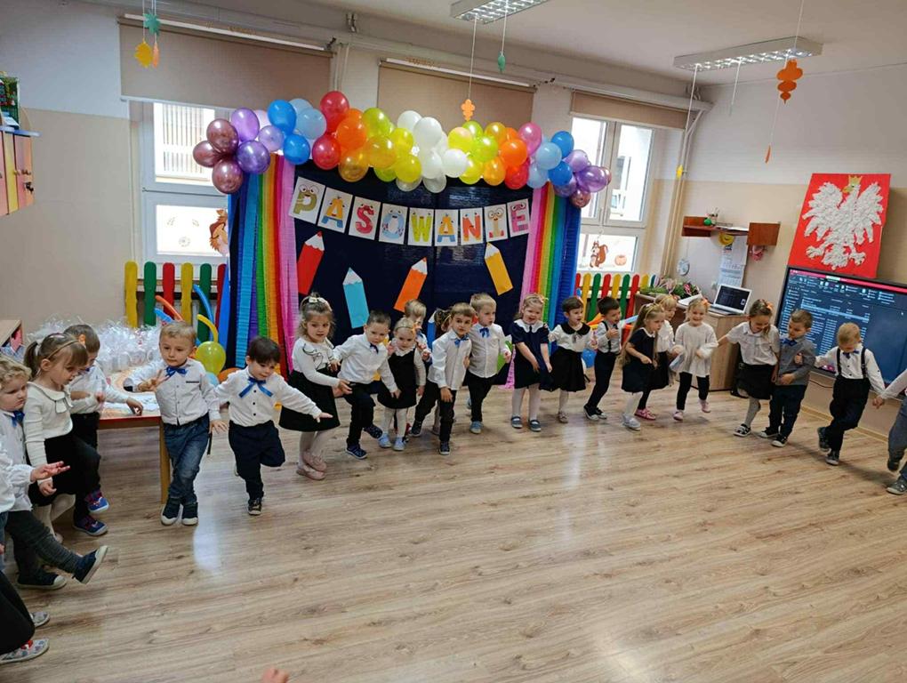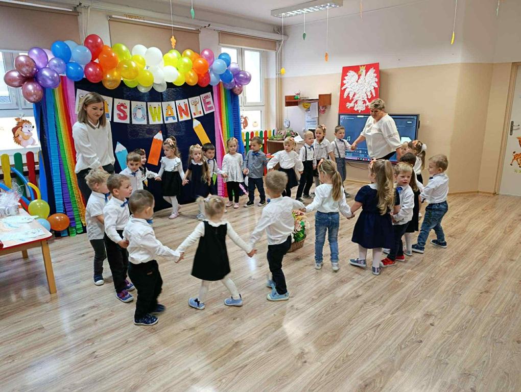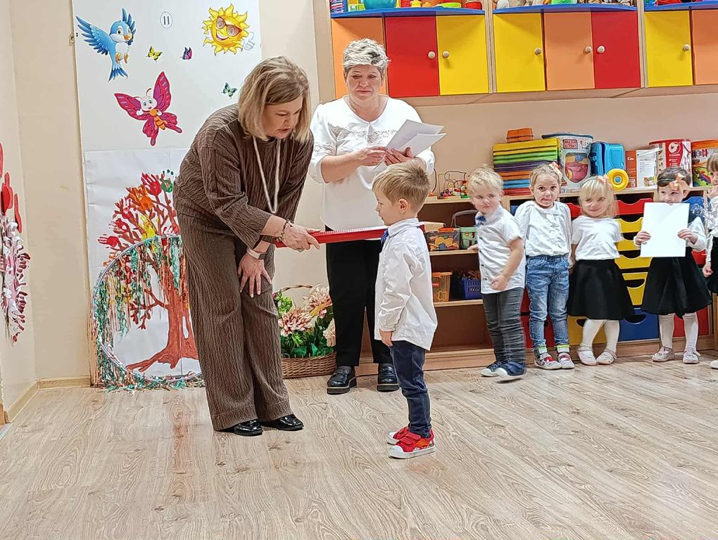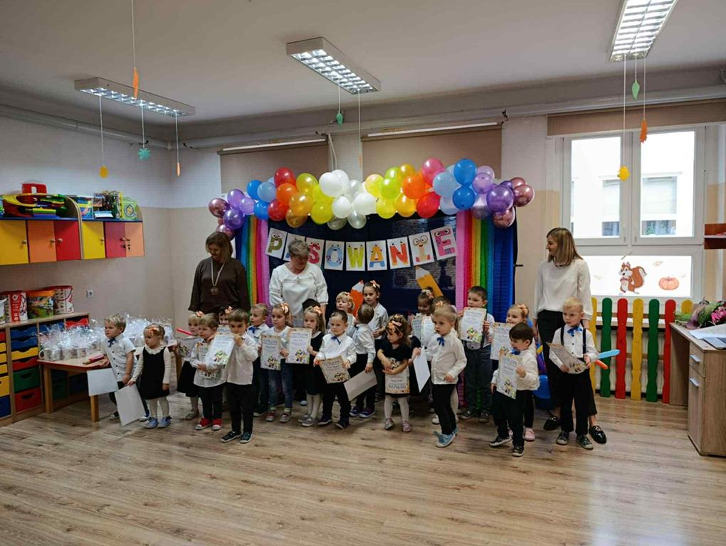 W obecności swoich rodziców oraz Pani Dyrektor Małgorzaty Maciejewskiej nasze maluchy złożyły uroczyste ślubowanie. Podczas uroczystości dzieci zaprezentowały zdobyte podczas nauki w przedszkolu umiejętności recytacji, śpiewu i tańca. Uroczystość była bardzo ważnym wydarzeniem wspierającym proces adaptacji dzieci w przedszkolu, rozbudzania wiary i pewności siebie oraz tworzenia atmosfery wzajemnego zaufania i otwartości.