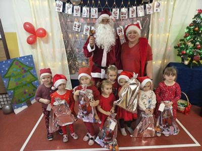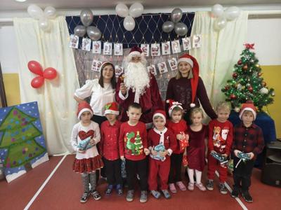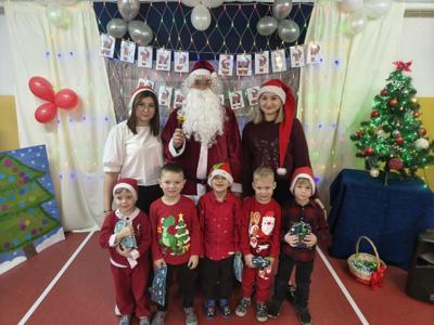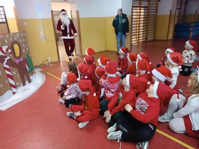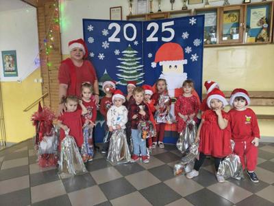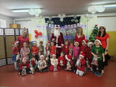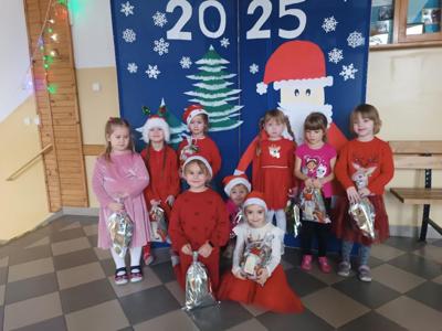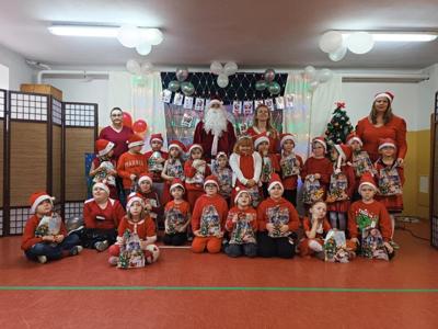 Zgodnie z tradycją nasze przedszkole w tym roku odwiedziła Święty Mikołaj. W tym dniu nasze przedszkole zmieniło się w wesołą świąteczną krainę. Stało się to za sprawą świątecznych strojów. i mikołajkowych gadżetów, prac plastycznych i dekoracji. Dzieci przygotowały dla swojego gościa niespodzianki w postaci wierszy i piosenek. Przygotowane zabawy sprawiły dzieciom wiele radości. Mikołaj obdarował wszystkich upominkami i obiecał,