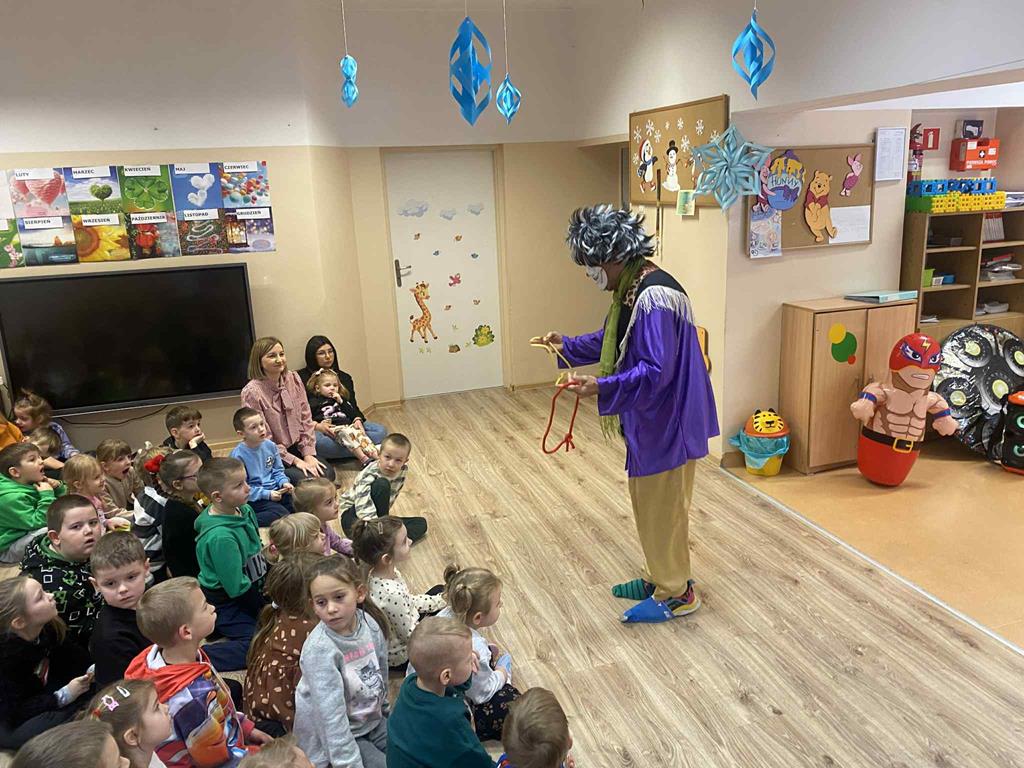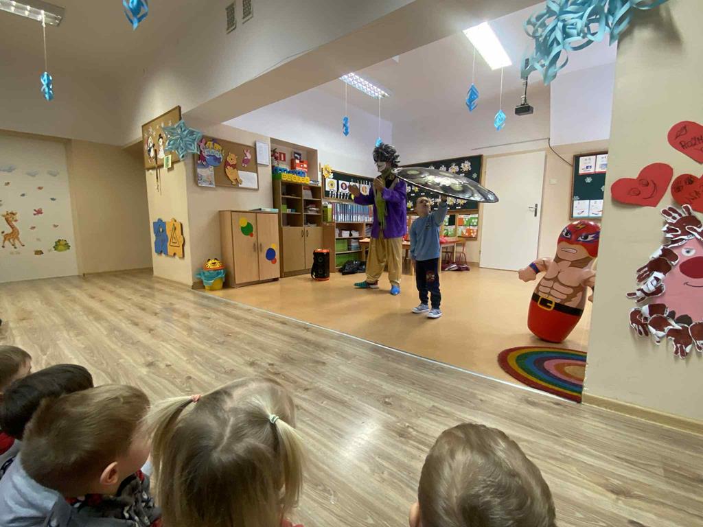 Nasze przedszkolaki odwiedził klaun Walduś, który zaprezentował dzieciom show sceniczne i zaangażował dzieci do świetnej zabawy. Dzieci miały możliwość obserwować pokaz iluzji i sztuczek magicznych angażując swoją uwagę, zręczność i spostrzegawczość. Spotkanie było pełne radości i śmiechu.